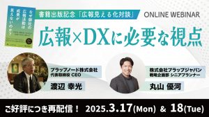 ご好評につき、先月に弊社グループ会社プラップノードと共催で実施いたしました、広報見える化対談『広報×DXに必要な視点』を再配信いたします